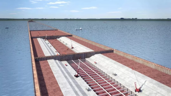 据了解,苏锡常南部高速湖底隧道工程采用围堰明挖、分仓逐段推进,施工人员将分别从隧道南泉和马山两端入口向湖中施工建设。其中,南泉段标段全长5730米,包含太湖隧道东段全长5380米,其中敞开段500米,暗埋段4880米;路基350米;涵洞1座;吴扬路上跨钢箱拱桥一座,全长113.48米。马山段标段全长5652米,包含隧道及附属房建工程、路基工程、桥梁工程、改河改路等项目。