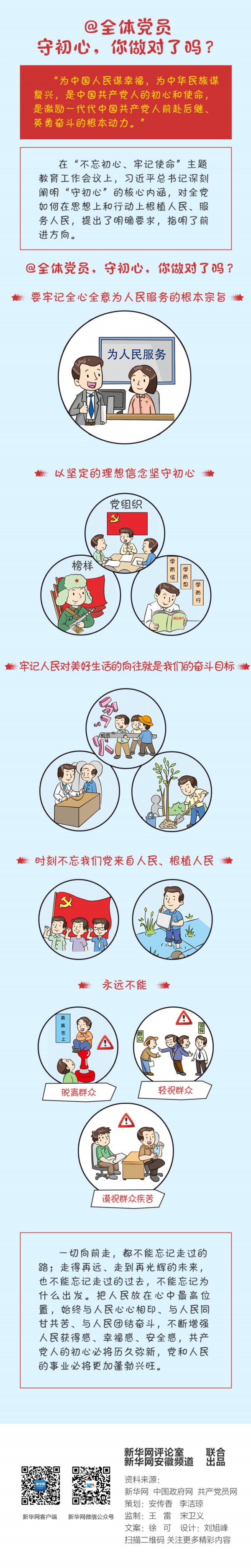 不忘初心,方得始终。开展“不忘初心、牢记使命”主题教育,守初心是要牢牢把握的总要求之一。守初心,与人民风雨同舟、血脉相通、生死与共,这是一个走过近百年风雨的大党的力量所在,更是我们不惧任何风险挑战的底气所在。