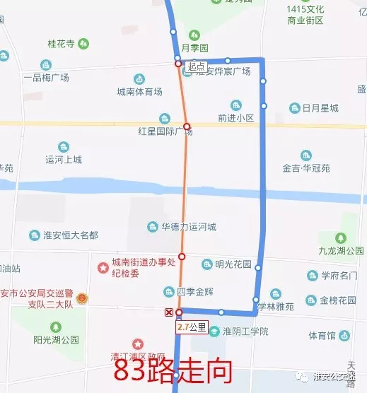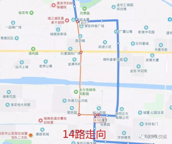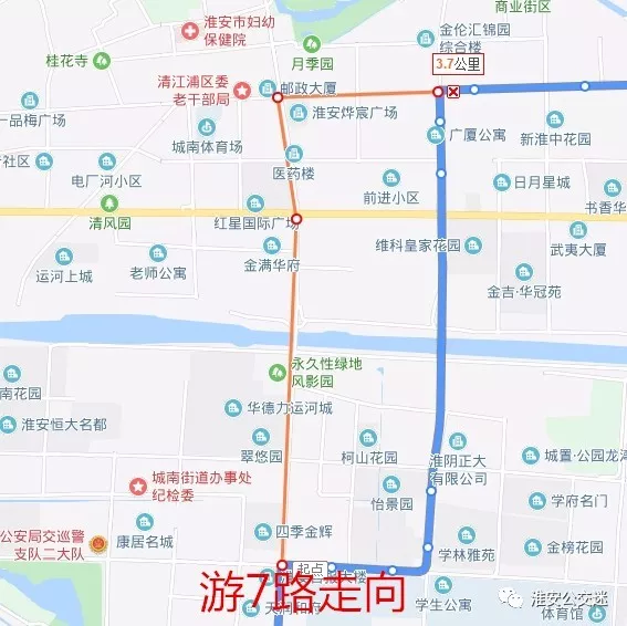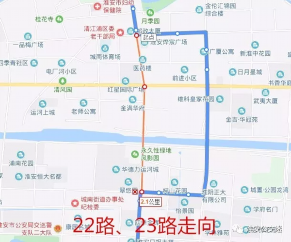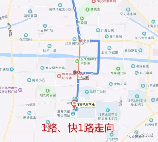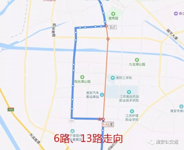 不再停靠绕行站点:解放西路、体育场、一中、一品梅广场、淮安市一院分院、延安西路、清浦大桥、北京南路、北京南路·枚乘路、现代食品城、朝阳路。