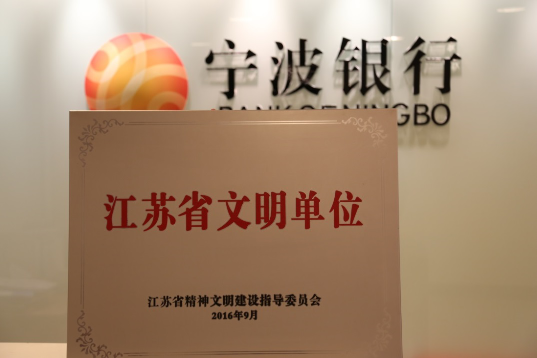 开疆拓土,文化相承。2008年6月,宁波银行正式进驻江苏地区,扎根于南京这块充满深厚历史文化积淀的热土,不断创造着令人瞩目的发展业绩,亦不断焕发着开拓创新的勃勃生机。同时,该行坚持将核心理念与感恩企业文化交融结合,致力镌刻在自身成长的每一步,收获了经营发展与品牌口碑的齐头并进,荣获“全国金融系统企业文化工作先进单位”“全国银行业安全管理百佳先进单位”两项国家级重量荣誉,蝉联江苏省(南京市)文明单位、惠民服务十佳好事、最具社会责任金融机构、总行年度先进集体、公众金融服务示范单位等多项重量级荣誉。