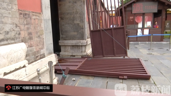 6月21号凌晨3点钟,一名男子饮酒后驾驶小轿车,迎头撞上了牌坊铁门。目前这起案件还在侦办中。事故发生后,南京市文旅局文保处的工作人员到现场做过勘查。据这名工作人员介绍,牌坊铁门是后来加装的,不属于文物本体。“基本上就是铁门坏了,其他的地方没有坏。然后铁门倒下来的时候把墙擦了一点印子。”