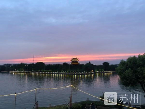 在夜幕的映衬下,晚霞显得格外好看,苏州变成了姑苏。