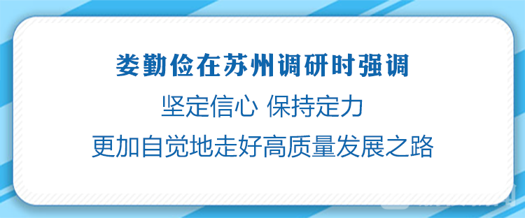 荔枝新闻讯 7月16日至17日,江苏省委书记娄勤俭就做好当前经济工作在苏州调研。他强调,要始终坚持以习近平新时代中国特色社会主义思想为指导,坚定发展信心,保持战略定力,抓住用好机遇,扩大对外开放,着力推动改革走深走实,通过做好精准服务充分激发市场主体的活力和创造力,扎扎实实推动高质量发展。