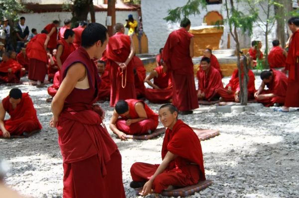 西藏三大寺之一的色拉寺,下午三点的林荫下红袍喇嘛们开始辩经。旁观一场辩经,也辩一辩来世今生。