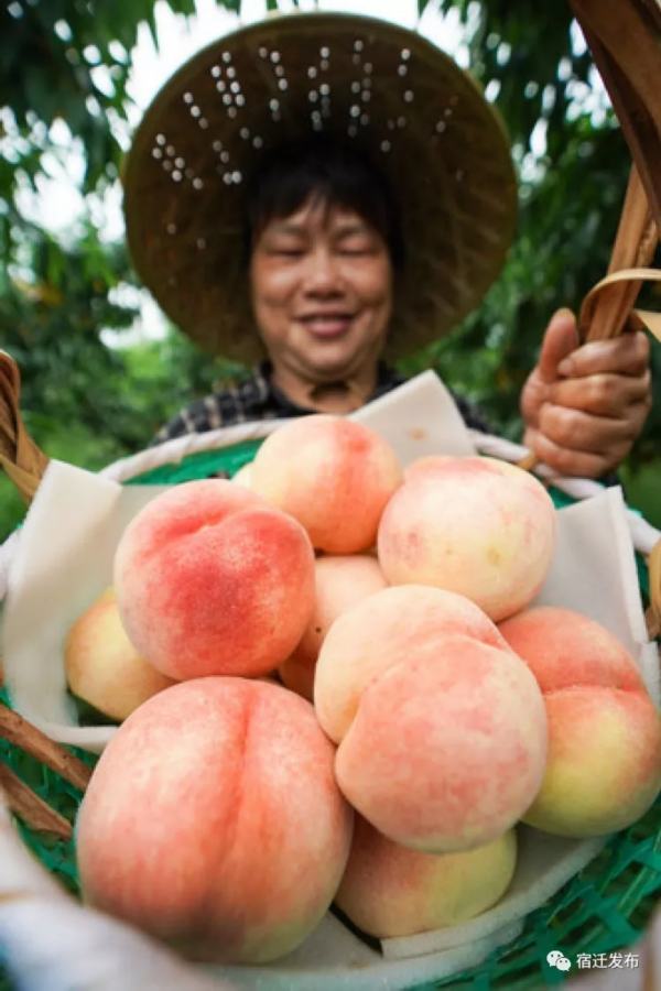 7月16日,在无锡市阳山镇桃源村大路头水蜜桃专业合作社,农户展示采摘的水蜜桃。新华社记者 李博摄