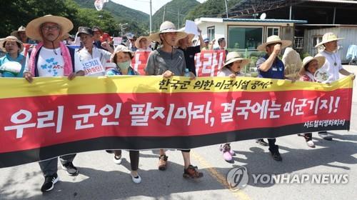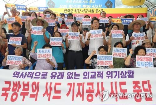 7月31日,韩国6个团体举行游行,反对在“萨德”基地施工。(韩联社)