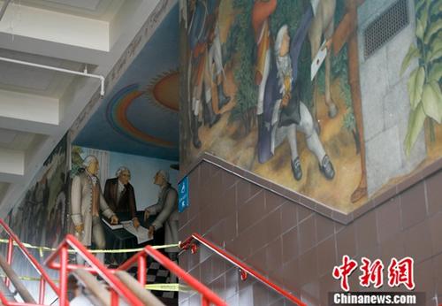 这幅壁画被批评为有种族主义倾向,传达出贬低非裔美国人和美洲原住民的思想。中新社记者 刘关关 摄