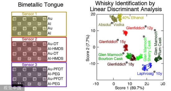 这些“味蕾”能从少量酒液中辨别出酒的品牌、产地和年份,测试结果显示,它能检测出12年、15年和18年威士忌间的区别,准确率超过99%。报道称,研究人员介绍说,“人造舌头”的原理与真舌头类似,虽然它不能分析各种饮料的成分,但却能感知到不同之处。