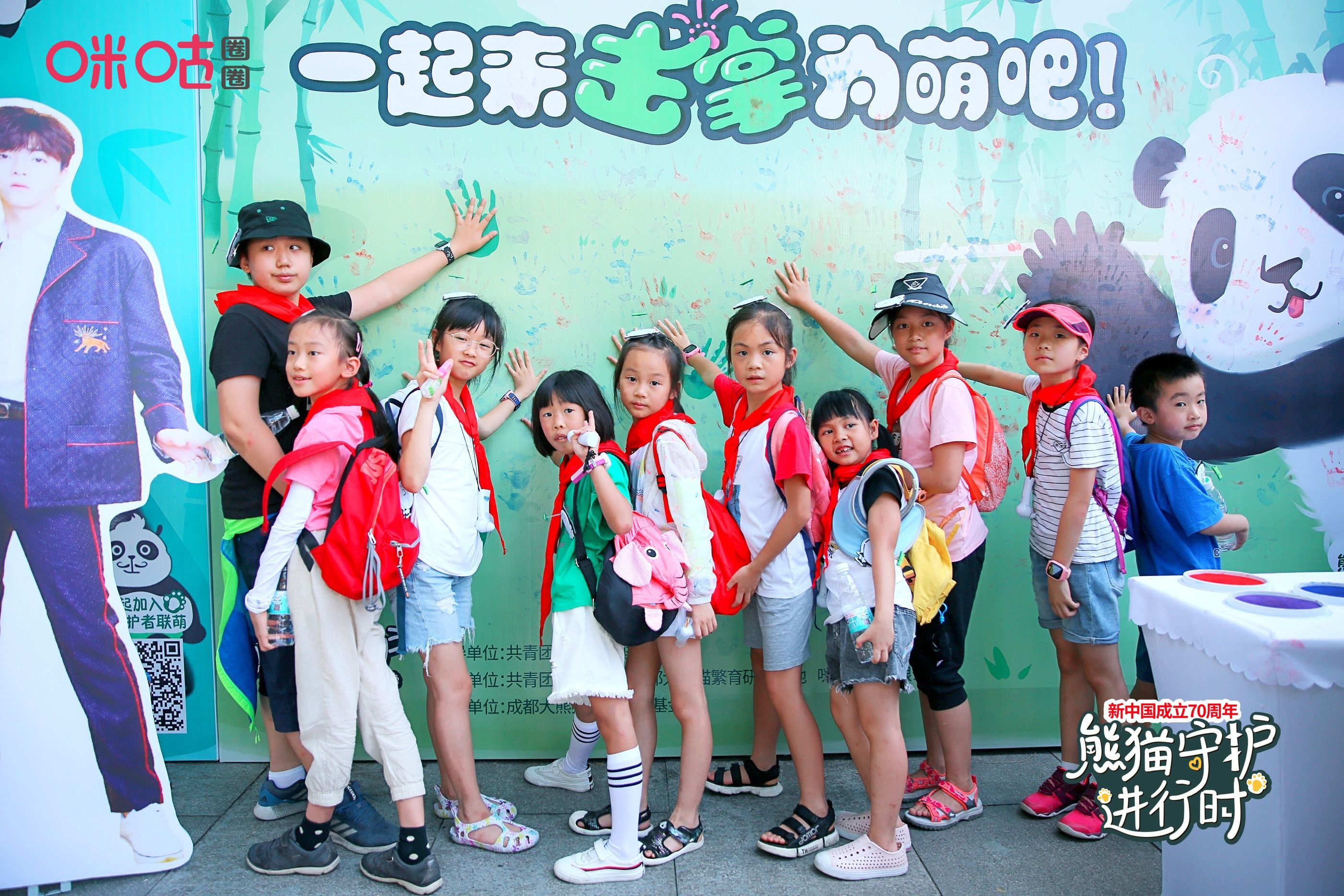 活动当天,来自四川成都天回、新光等8所小学的10名少先队员与咪咕圈圈首席创意官陈立农一起走进成都熊猫基地,为咪咕认养的大熊猫“成实”提前庆生。