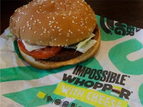 Impossible Whopper的肉由ImpossibleFoods公司提供,是一种用大豆蛋白、马铃薯蛋白、椰子油和葵花籽油等全素材料制作,味道可以乱真牛肉。
