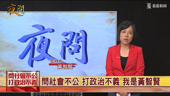 果然,黄智贤说到做到!她回来了!近日黄智贤在Youtube平台开出节目《黄智贤夜问》,节目延续了《夜问打权》的模式,邀请岛内民意代表、教授、退休官员等,继续抨击蔡英文当局,发出支持两岸统一的最强音。
