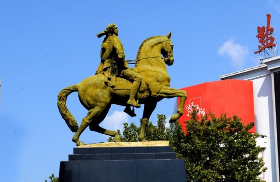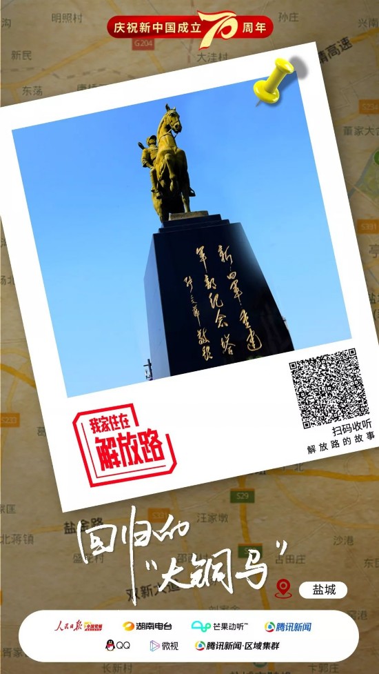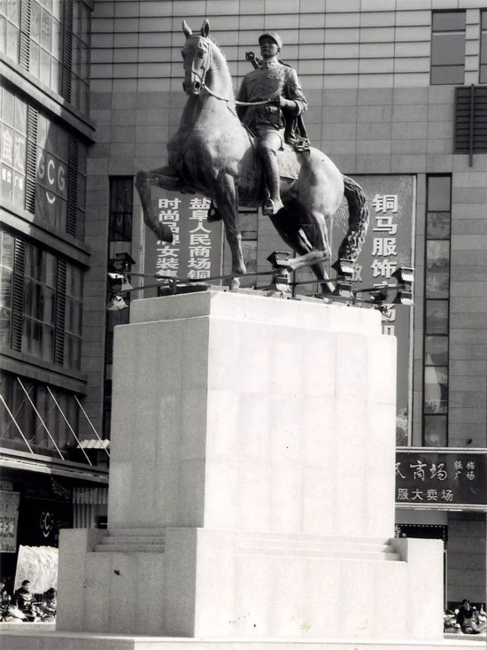 姜涛所说的大铜马是坐落在解放路上的盐城显著地标,它的前身是旧盐城中心地标“中市桥”——1969年为纪念建国二十周年而建的“忠字塔”,1986年改建为“新四军重建军部纪念塔”,因塔身是新四军战士骑马东进的铜像,所以盐城人把它亲切地称作“大铜马”。如果说姜涛和她的席殊书屋跟盐城解放路有着一世的情缘,那么大铜马则跟盐城解放路有着三生三世的渊源。