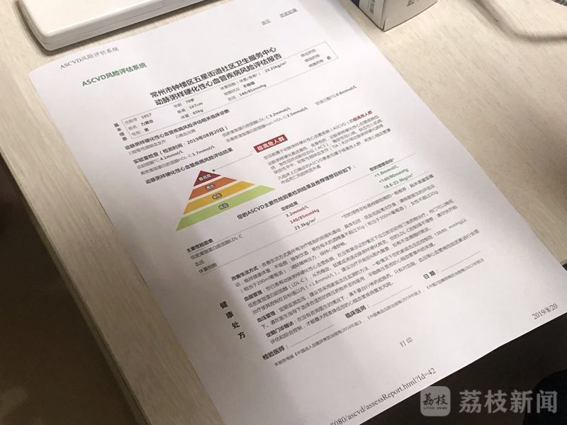 不仅仅如此,社区还采用了ASCVD风险评估系统。这个系统神奇之处在哪里呢?简单来讲,只要输入患者的性别、年龄、体重、血压血脂及是否抽烟喝酒几项指标,几秒钟后,患者就可以得到一份关于你心血管疾病危险程度的报告,检验报告十分简洁明了,患者可以一眼看出自己疾病的危险程度。这样一份直观可视化的报告,涵盖了家庭医生要解释说明两个小时的内容。这个评估报告还会推送给患者的家庭医生,医生看完报告后,会根据患者的危险程度对其进行个性化的健康教育和指导,判断怎样治疗,或是转去上级医院。