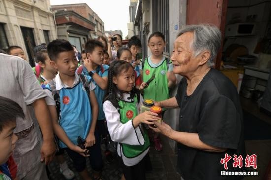 7月10日,30余名北京小学生组成“小记者团”前往前门及附近老街巷,探访当地传统老字号故地,记录体验传统文化。中新社记者 崔楠 摄