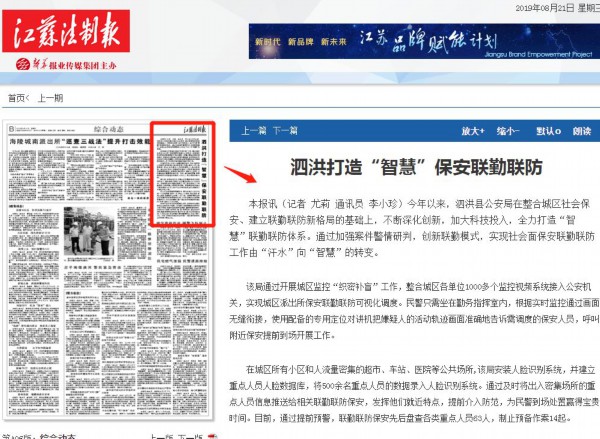 在城区所有小区和人流量密集的超市、车站、医院等公共场所,泗洪县公安局安装人脸识别系统,并建立重点人员人脸数据库,将500余名重点人员的数据录入人脸识别系统。通过及时将出入密集场所的重点人员信息推送给相关联勤联防保安,发挥他们就近特点,提前介入防范,为民警到场处置赢得宝贵时间。目前,通过提前预警,联勤联防保安先后盘查各类重点人员63人,制止预备作案14起。