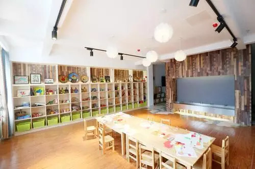 幼儿园一至三楼相应分布着小班、中班、大班教室,各楼层分别采用鹅黄、嫩绿、淡蓝色为主色调,充满温馨和童趣。教室内的桌椅、板凳、置物架等均为原木材料,确保符合环保要求。每间教室内均分设了科学区、益智区、生活区、才艺区等不同功能区,让孩子们能够尽情地参与游戏活动,学习生活本领,获得益智启示。教室里还配置了超大屏一体机和展示仪,置于展示仪上的物品、书本等,可直观呈现在大屏幕上,还可实时进行编辑处理。一体机内置有海量幼儿游戏教学数字资源,还可直接连接上网,进一步丰富幼儿活动内容。