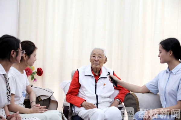 这位老人叫秦华礼,四川通江人,今年107岁,是原南京邮电学院第一任书记兼院长。1932年红军长征入川时,他加入红军,在长征中三过草地,参加了空山坝战役、万源保卫战、强渡嘉陵江、攻克剑门关、中坝和千佛山等重要战役。秦华礼老人在南京邮电学院工作了25年,培养了十多万名通讯人才,为南邮的发展做出了卓越的贡献。