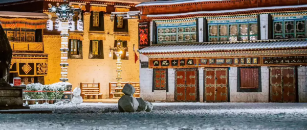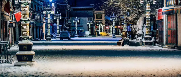 纷纷扬扬飘下来时还不以为意,落在屋顶上也没有声音,但第二天起床看到一座银装素裹的城市时,只有满眼惊艳。冬天下雪时,拉萨的天空才会难得不蓝一次,白色的天空下,白茫茫的屋顶,白色的宫殿和白茫茫的街道融为一体。因为下雪,街上的商店开门会格外晚,车辆也稀少,只有依然虔诚磕着长头的信徒和矜矜业业走在路上的上班族,才会让人觉得这个城市醒过来了。