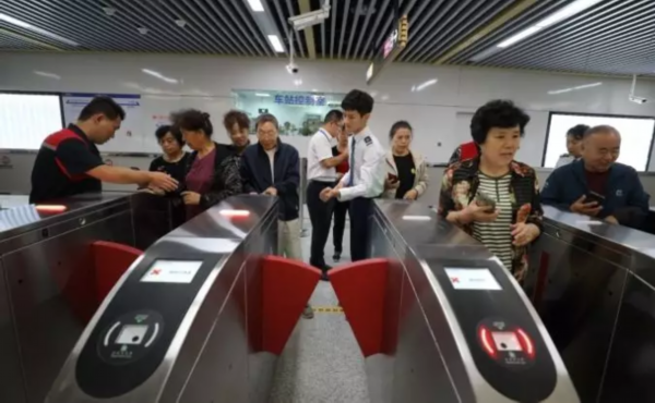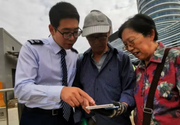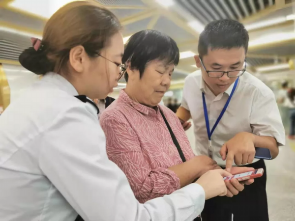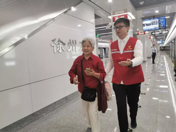志愿者引导老年人出站