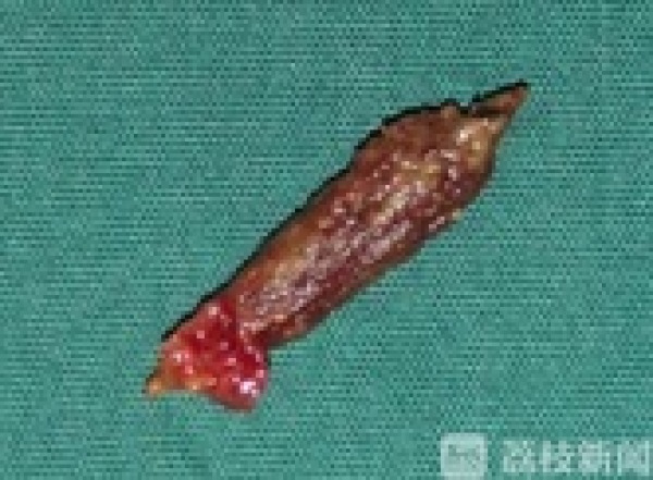 因为患者病情危重,且疼痛越来越严重,已经没有时间和精力去探究穿孔原因。为了争分夺秒挽救患者性命,与家属充分沟通签字后,值班医生决定通知手术室准备腹腔镜探查。通过探查,发现肠腔内尖锐样异物刺穿小肠,形成贯通伤导致穿孔。经过下腹部开微创小口取出后,医生仔细观察辨认,发现是食用的枣核。经过手术治疗,患者的病情终于彻底稳固下来。