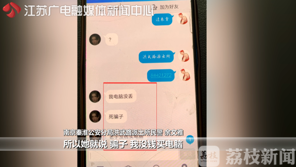 民警告诉她电脑丢了,叫她到派出所来领,结果她以为是骗子。到那个时候,她都不知道自己的电脑丢了,所以她就说:“骗子!我没钱买电脑。”