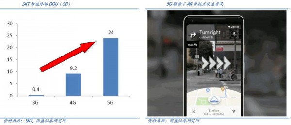 根据国盛证券研报,市场普遍认为当下 5G 应用尚不丰富,流量增长需待应用爆发,但韩国 5G 推出半年以来的情况表明,在没有明显新应用的情况下,依靠高清视频、AR/VR 等既有业务,实现了流量逾2倍增长(平均每户每月上网流量从约8G到25G),未来有望进一步提升,而流量需求的增长才是运营商投资的根本动力。