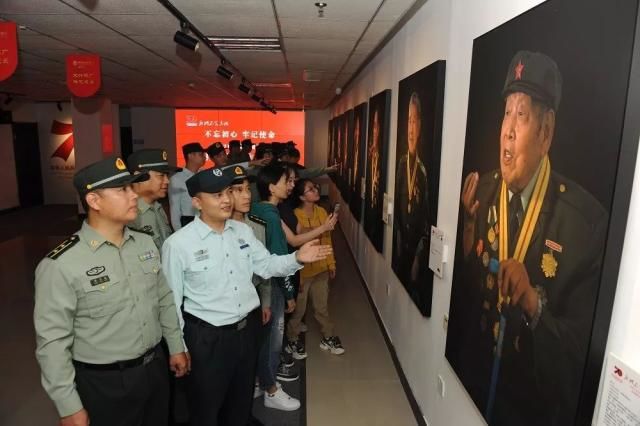 在参观人群中,该市领导介绍说,全市党政机关、企事业单位等都把参观老兵肖像展,作为“不忘初心,牢记使命”主题教育的规定动作。