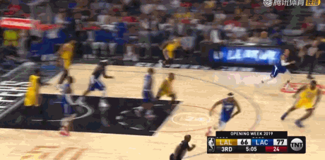 詹姆斯才不管老里和贝弗利的打算,既然快船给错位机会,他不打白不打,在比赛中就充分利用。这个球詹姆斯仍然是右侧落位,错位背打贝弗利,快船的包夹来得很快,詹姆斯直接将球传给空位的格林,助攻格林投中三分。