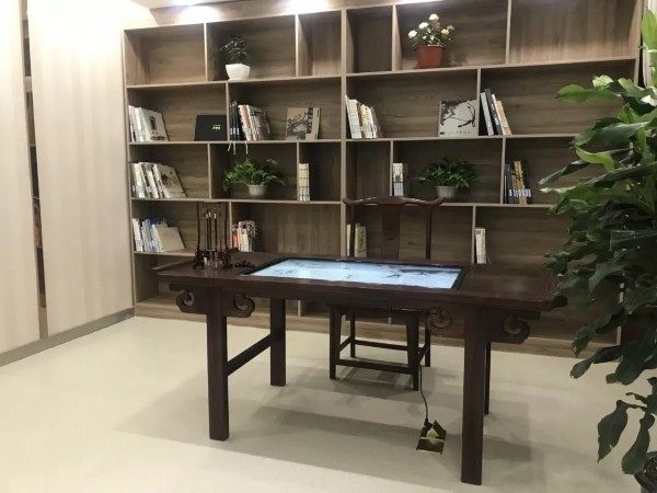 原影音体验区已改为虚拟书法体验区,手指划一划,在屏幕直接写毛笔书法或画中国画,更有临贴模式,读者可将满意的作品保存或发至社交媒体。