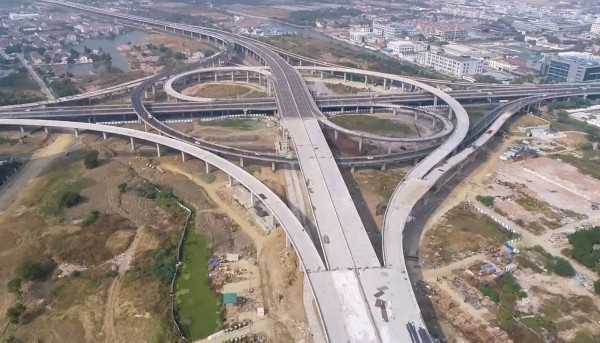 这是一座连接高新区到相城区的互通立交桥,跨S228互通,目前桥梁主体全部结束,桥梁附属完成过半。