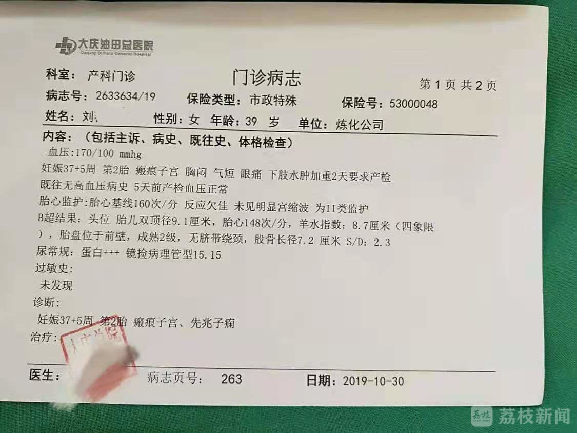 刘女士回应称,女儿的预产期是11月14日,当天去就医的10月30日,距离预产期还有15天。“当天早上起来,她突然眼睛有点难受,腿也肿了,所以去医院做的检查。之前检查,都一切正常”。