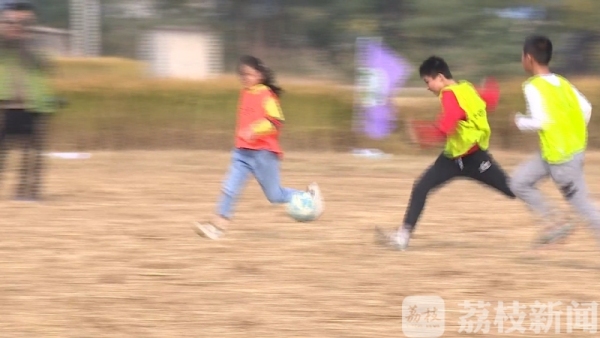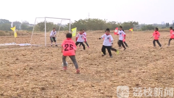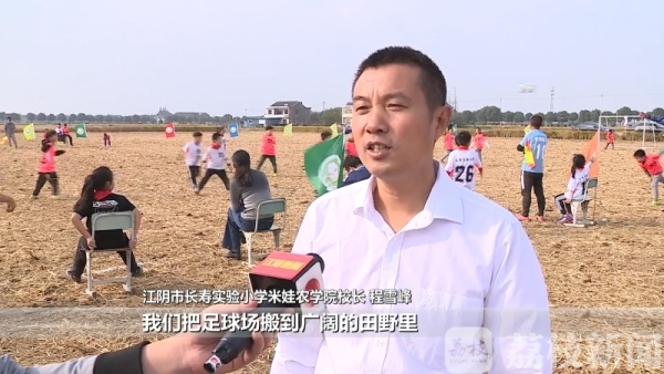 正在稻田球场上挥洒汗水的是无锡江阴市周庄镇长寿实验小学"米娃"农学院的小球员们。比赛中,双方你追我抢,展示了高超的带球技术与默契的配合度,场面精彩、趣味十足。