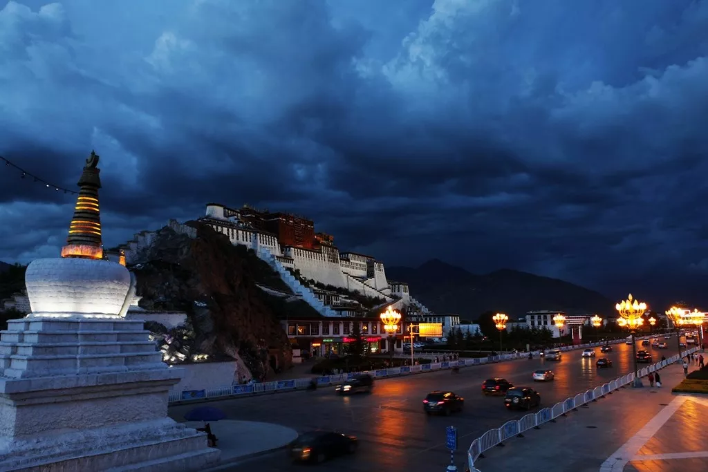 天上繁星,地上布宫。日光城的夜幕终于到来。很多人在广场席地而坐,却各自静默,他们在看布宫夜景和她的倒影。