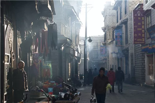 光明港琼甜茶馆,木桌木椅,茶浓奶香,一两个人去的话,喝不了一壶,就把钱放在桌子上,添茶的大姐会找零给你。茶馆的棚顶很高,棚顶之下是形形色色的人,喇嘛、妇女、游客,而这些人又好像都只是同一种人。