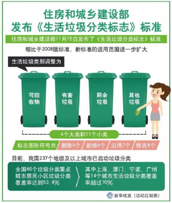 在苏州大市范围内,厨余垃圾和易腐垃圾的叫法始终不统一。但根据《条例》最新的修改内容,苏州市接下来会参照国家标准《生活垃圾分类标志》(GB/T19095-2019),将生活垃圾分为可回收物、有害垃圾、厨余垃圾、其他垃圾四类。