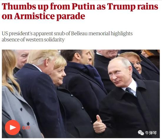 比如,去年巴黎一战百年纪念,两人被逼到只能公开场合眼神交流,从现场画面看,马克龙、默克尔等,见到姗姗来迟的普京,都是一脸的严肃。只有特朗普很特别,似乎不由自主地就咧开了嘴。