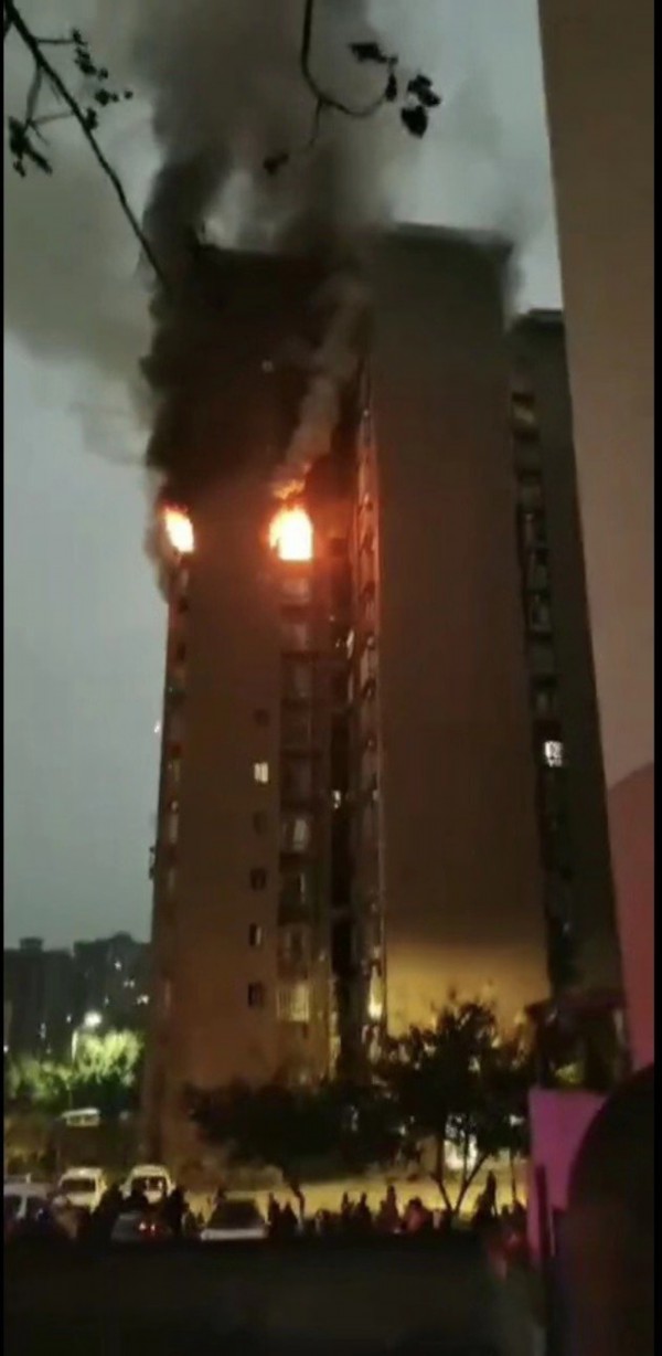 据现场视频显示,火灾发生后,现场浓烟滚滚,有明火窜出楼外,同时陆续有火星从楼外坠落。消防救援时,疑似有私家车堵塞消防通道,周边群众见状立即上前和帮忙,合力挪车,让出消防通道。