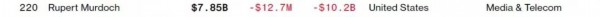 当然也不是所有人都只增不减,有些人倒的确身家大缩水,比如鲁伯特·默多克,