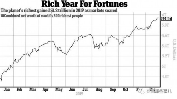 也就是说,最富有的这500个人在2019一年内一共赚了1.2万亿美元……