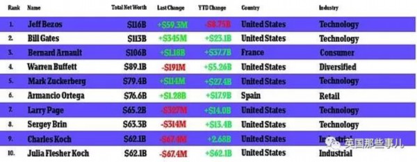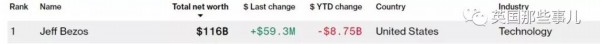 在这个榜单里排行第一名的“世界首富”,还是美国亚马逊的CEO Jeff Bezos……