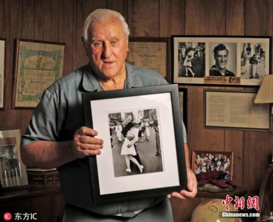 2019年2月,二战经典照片“胜利之吻”中的美国水兵门多萨(George Mendonsa)辞世。