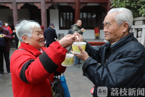 很多市民一大早就来到毗卢寺,品尝免费的“腊八粥”,过欢乐幸福祥和的“腊八节”。