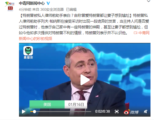 特朗普私人律师前助手列夫·帕纳斯在接受采访时出现一段诡异的发言,当主持人问是否爱过特朗普时,他表示自己家中有一座特朗普的神殿,甚至让妻子都感到尴尬,但如今他却多次提供对特朗普不利的情报,特朗普则表示并不认识他。