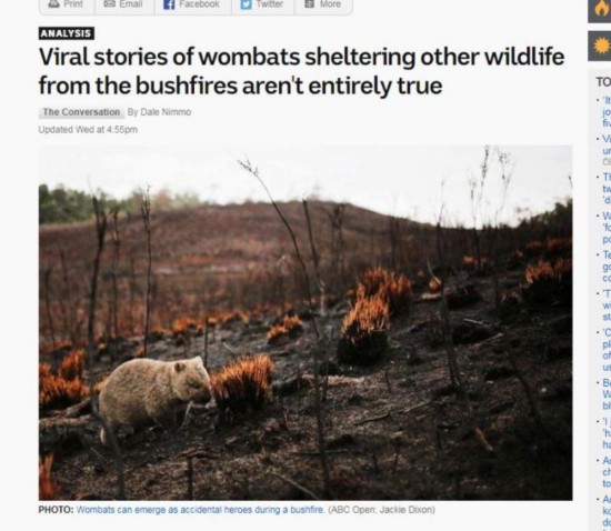 澳大利亚袋熊无意间成为林火中的英雄,为其他动物提供“避难所”。来源:澳大利亚广播公司网站报道截图