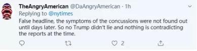 但这些说法也遭到其他美国网民的驳斥,有人就讽刺说:对特朗普来说,脑震荡当然不算受伤了,因为他自己就是脑损伤……