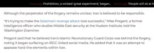 支持特朗普的美国右翼媒体《华盛顿审察者报》则引用美国一名前情报人员的说法称,这则虚假信息很可能是伊朗方面编造出来的,目的是为了让伊朗8日对美军的那次报复性空袭看起来很成功。
