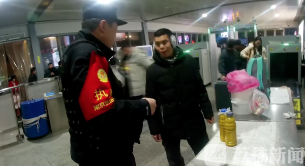 春运期间,旅客的出行安全是铁路警方关注的重中之重。最近,在常州火车站南广场,民警截获了一名企图将两瓶油漆带进车站的男子。