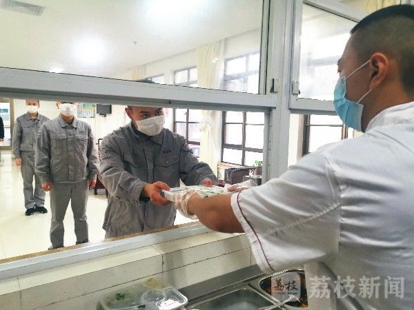 “开餐单位要在食堂配备测温仪,对进入餐厅人员开展体温检测等防护措施,应采用错时错峰就餐,避免集中用餐……”在网上无意间刷到的一则消息,不禁让陈治名眼前一亮。“分餐、分时、分段!”于是,陈治名制定用餐细则,大力推行错峰开饭,并规定就餐人员保持距离分开坐、保持1米以上距离排队打饭、就餐期间不得交谈等措施,让就餐人员心中有规矩,行动有分寸,有效降低了食堂人员密度,堵住了病从口入的第二个“通道”。