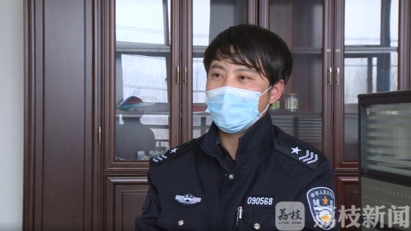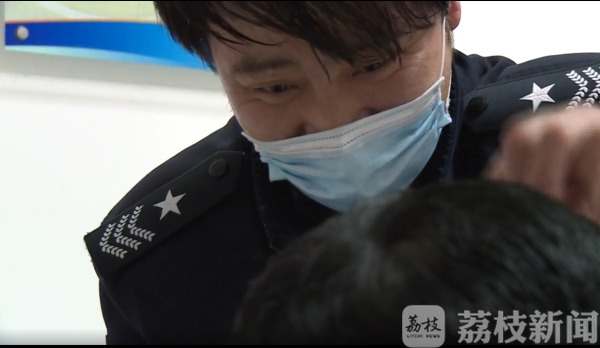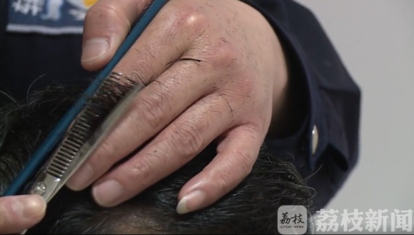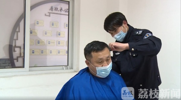 用梳子梳起一排头发,一把剪刀上下飞舞。这位身穿辅警制服的人叫彭雷,是宿迁市交警支队机动大队的一名辅警,正在理发的这位是他的同事苗成:“年后一直想理发,找不到营业的理发店,正好我们单位的彭雷,有这个技术,解决了我们大家的燃眉之急。”