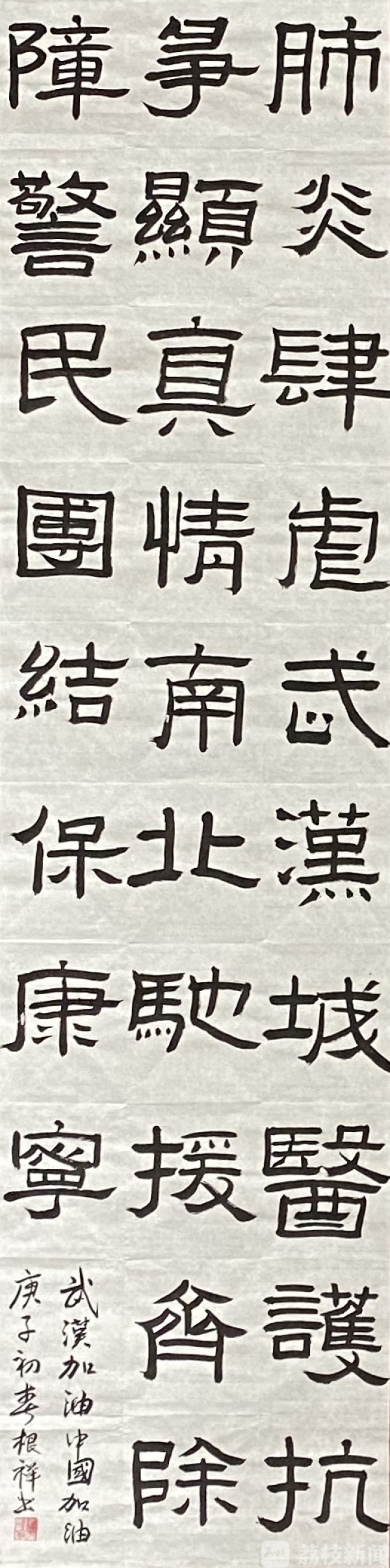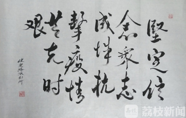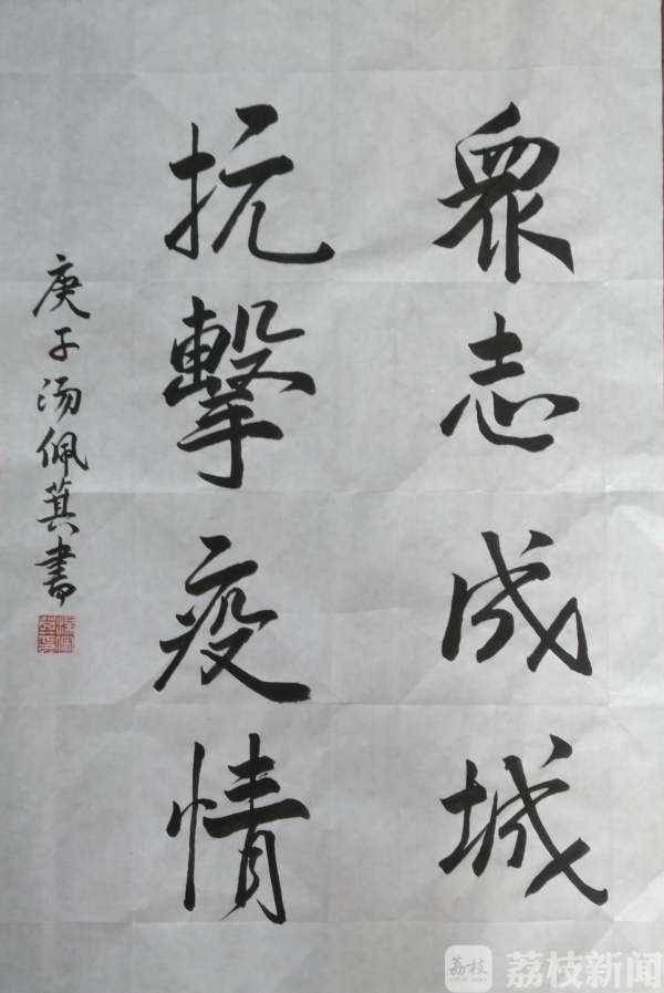 庚子新年,举国抗击新型冠状病毒肺炎疫情。江苏镇江京口公安分局的民警、警辅和亲属将一线的战“疫”决心转化为创作热情,一系列书法、美术、诗词作品脱颖而出,展现抗击疫情战斗中难忘瞬间和强大精神力量。